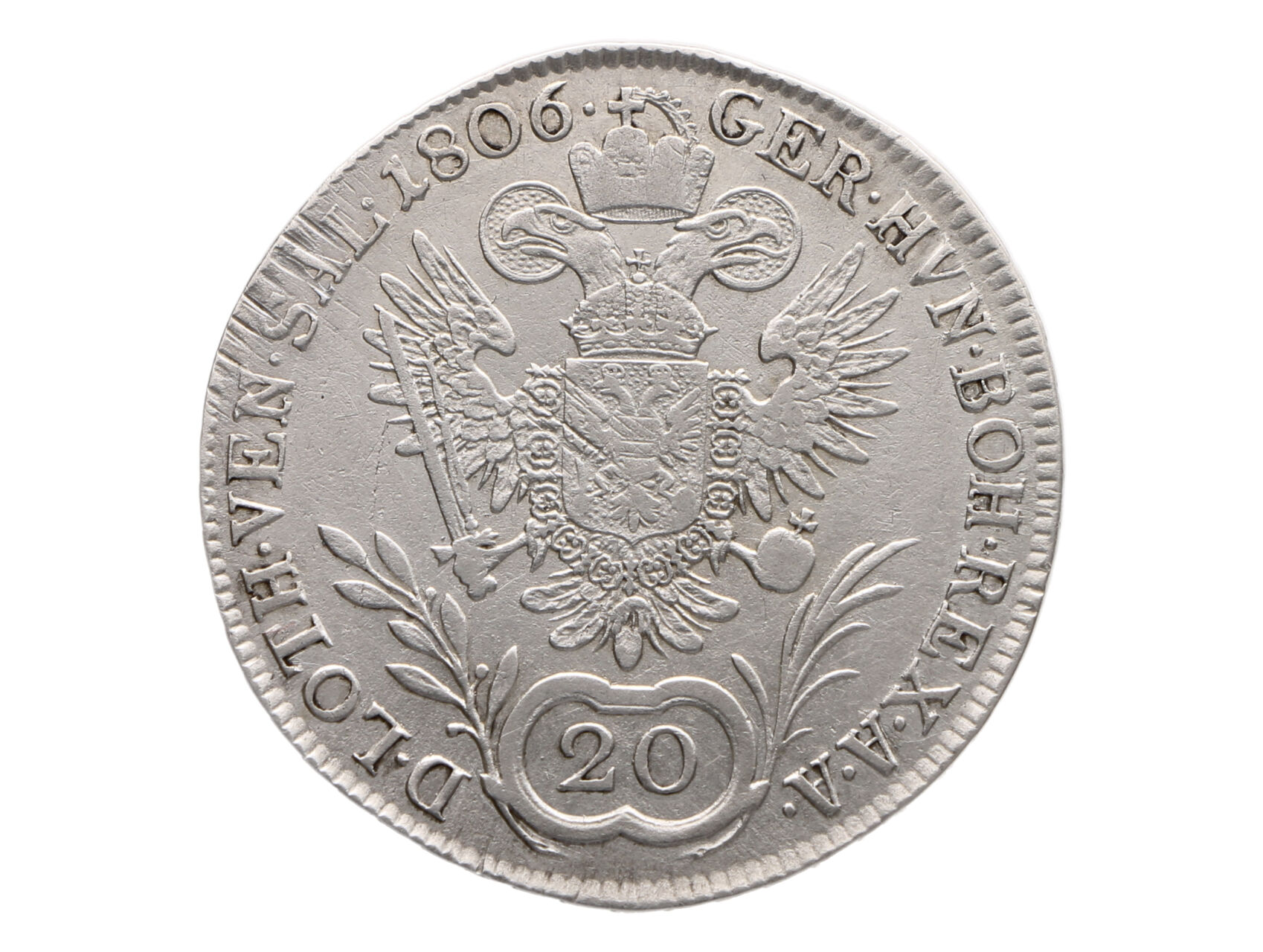 20 Krejcar 1806 A, mírně justován_