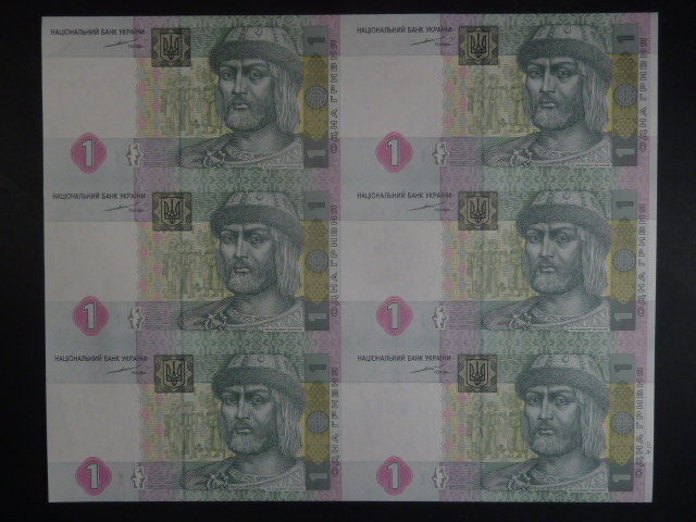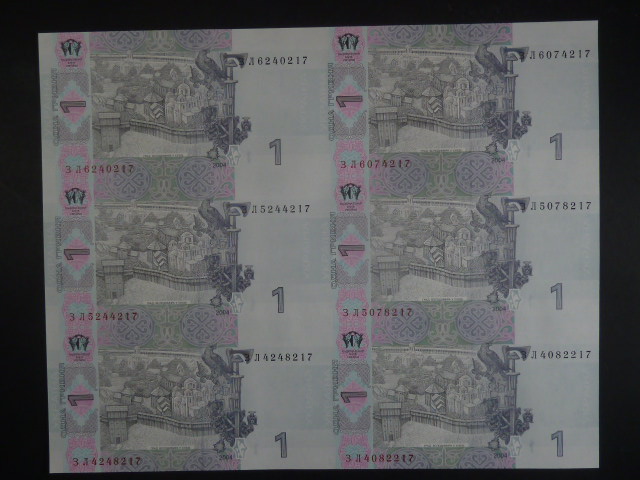 • 1 Hryvnia 2004 tiskový arch 6ks, BNB. B843a