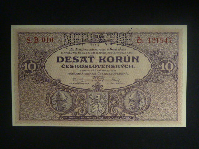 10 Kč 1927 série B 010, perf. NEPLATNÉ