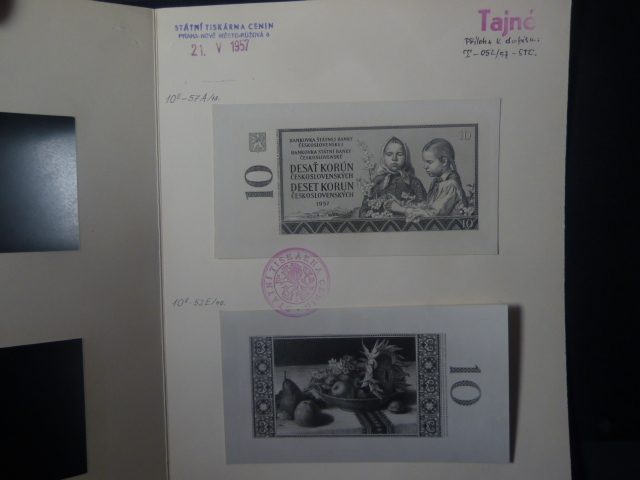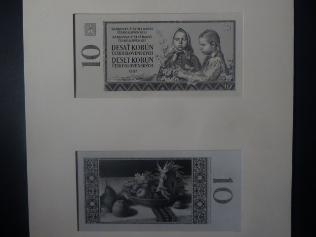 10 Kčs 1957 původní fotonávrh rubu a líce z STC v paspartě, velmi vzácné
