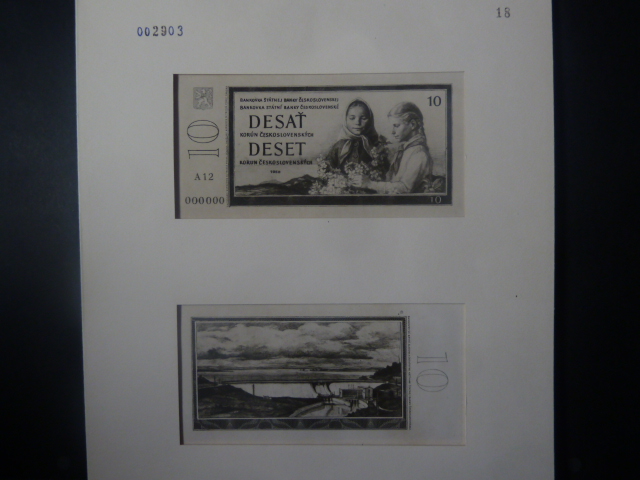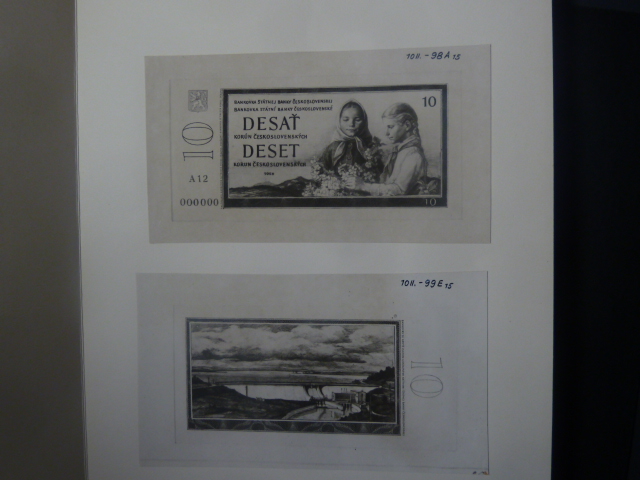 10 Kčs 1958 původní fotonávrh rubu a líce z STC v paspartě, velmi vzácné