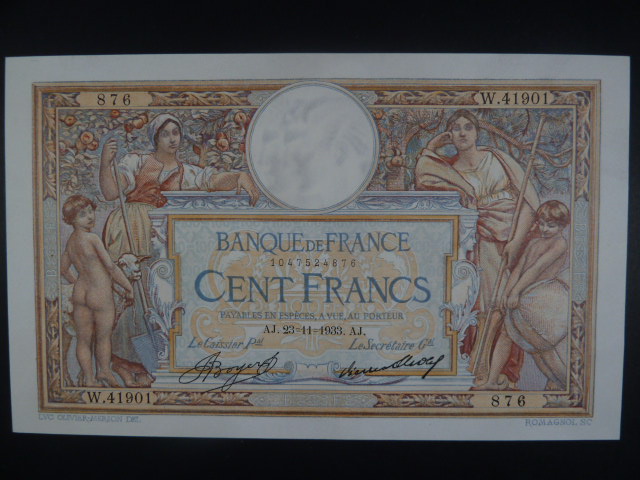 100 Francs 23.12. 1933, BNB. 951f, Pi. 71