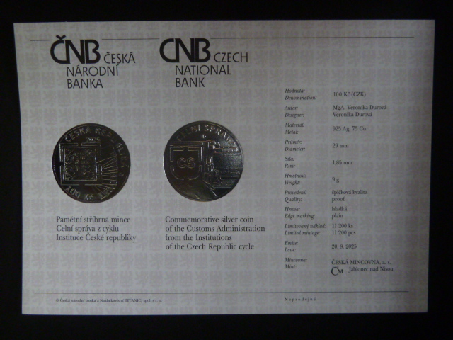 100 Kč 2025, Celní zpráva z cyklu Instituce České Republiky