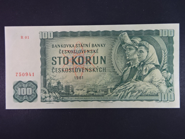 100 Kčs 1961 série R 01, úzký číslovač 1a, první série