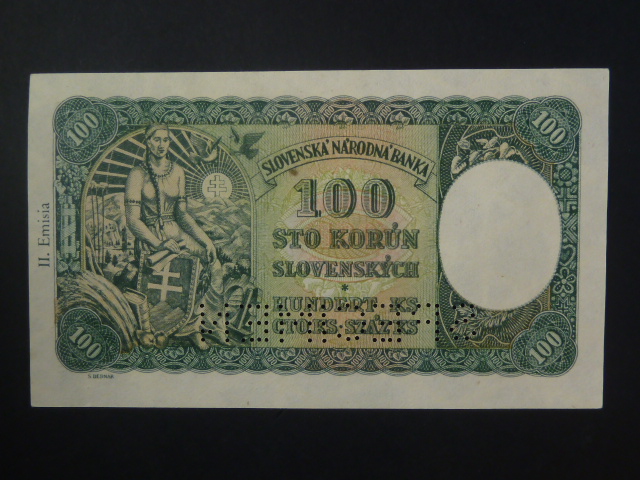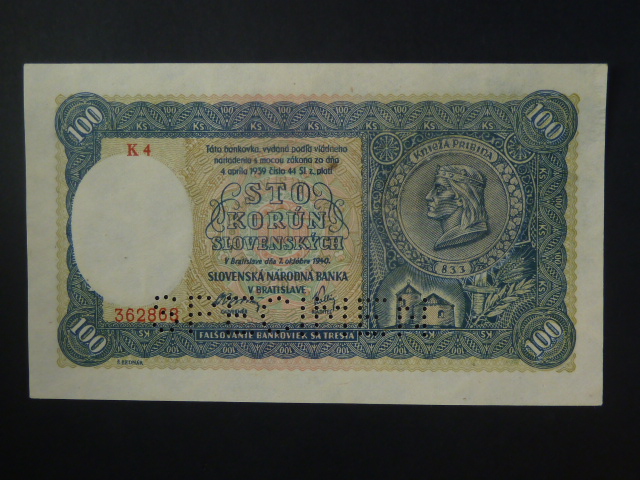 100 Ks 1940 II.vydání, série K 4, 1x perf. SPECIMEN dole