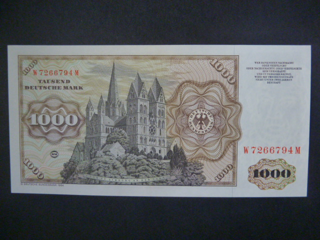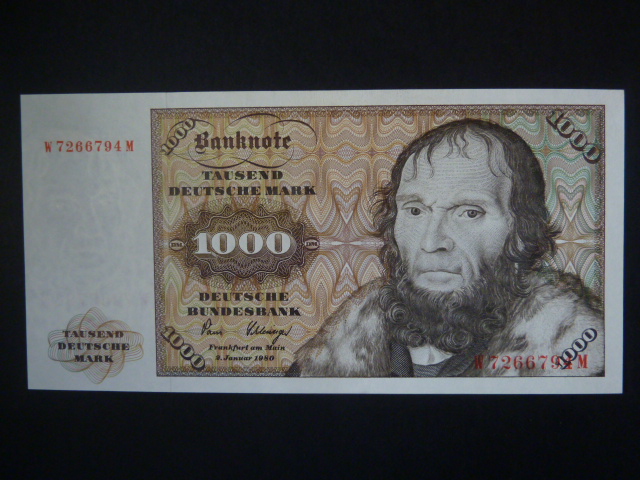 1000 Deutsche Mark 1980, série W/M, Ro. 291, Pi. 36b, Grab. BRD-35a