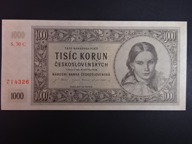 1000 Kčs 1945 série C 30, perf. "3md" nad sebou