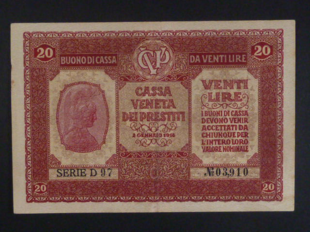 20 Lire 1918 Benátky - okupace Rakousko-Uherskem, BNB. B507a, Pi. M7