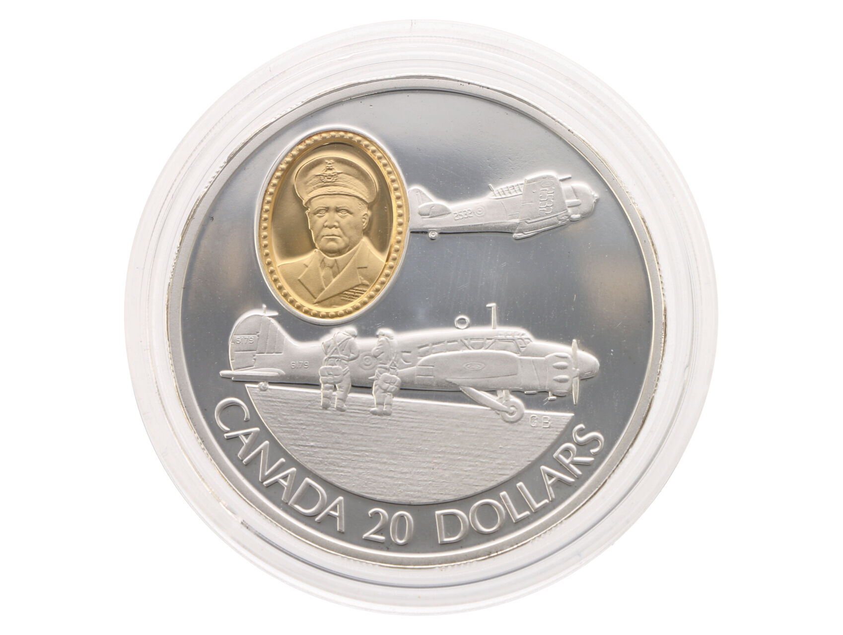 20 Dollar 1990 - letoun Avro Anson, 31,1g, 0.925 Ag_