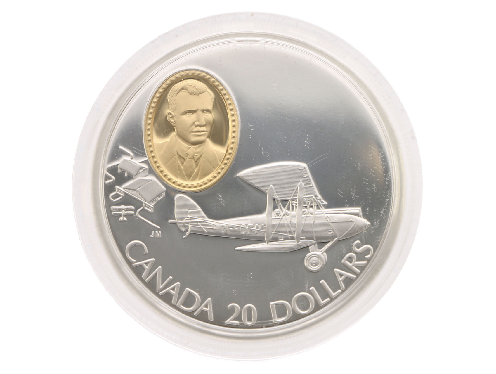 20 Dollar 1992 - letoun de Havilland DH.60 Moth, 31,1g, 0.925 Ag_