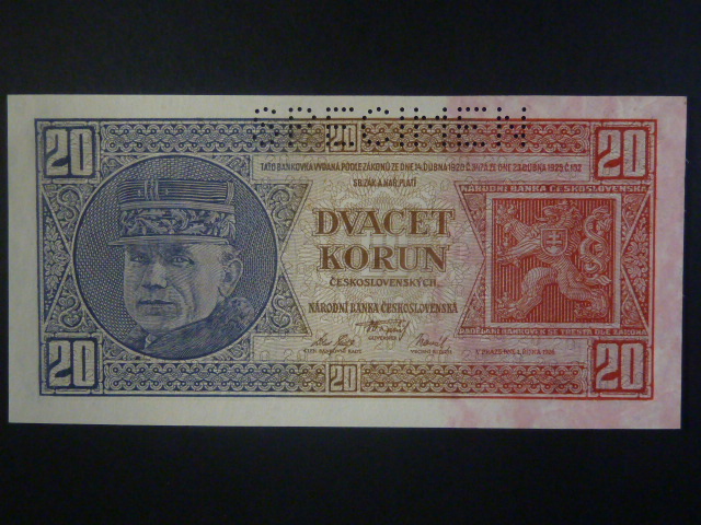 20 Kč 1926 série Ig, perf. SPECIMEN z líce