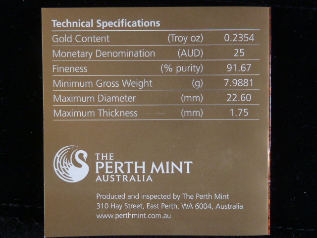 • 25 Dollars 2012, Au 917/1000, 7.99 g
