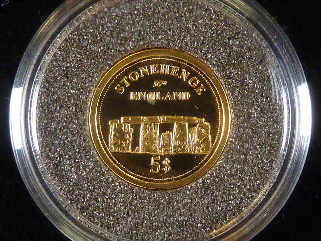5 Dollars 2006 Stonehenge, Au 585/1000, 1,25g, průměr 13,92 mm