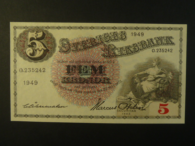 5 Kronor 1949 var. podpisu 9, Pi. 33af.