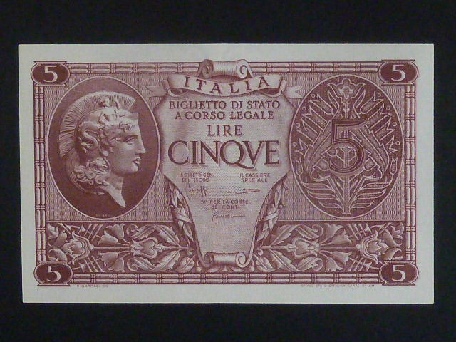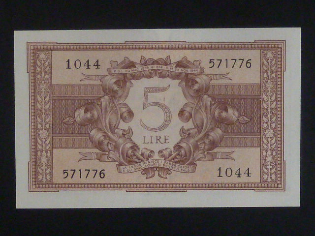 5 Lire 1944 serie 1044, BNB. B318c, Pi. 31