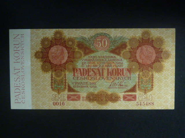 50 Kč 1919 série 0016 úzké číslice
