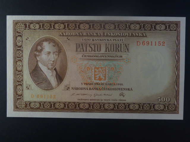 500 Kčs 1946 série D, perf. "3md" nad sebou