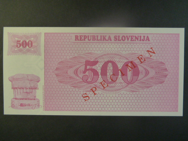 500 Tolarjev 1990, BNB. B208as, Pi. 8, s přetiskem SPECIMEN, anulát