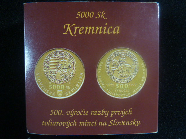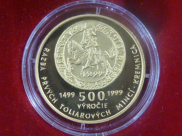 5000 Sk 1999 Ražba prvních tolarových mincí v Kremnici, Au 900, 9,5g, etue, certifikát