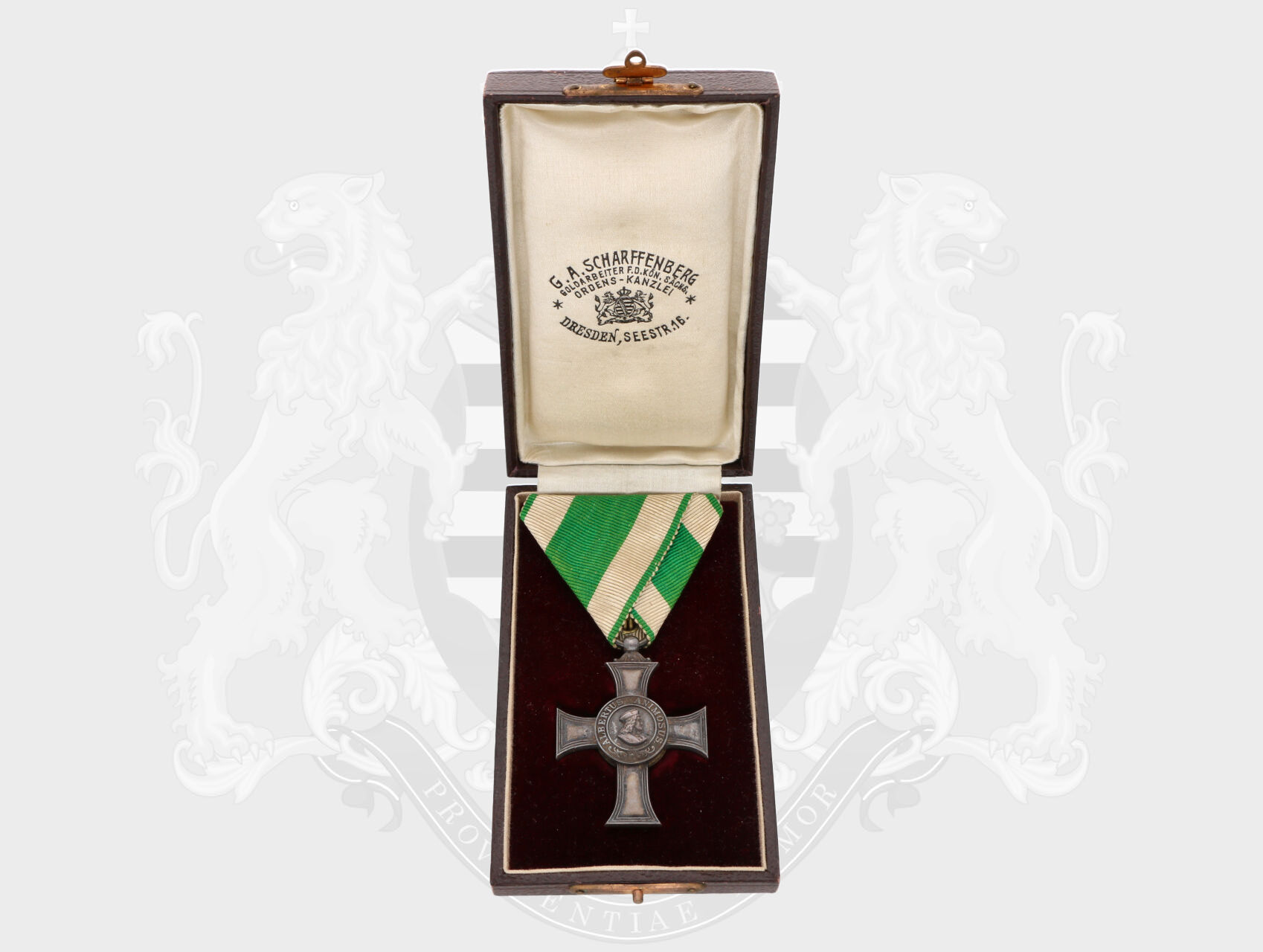 Albrechtův řád, stříbrný kříž, 1876 - 1909, stříbro. neznačeno, nepuncováno, originální etue značená G.A.Scharffenberg. Nimm.2214, Bar.650