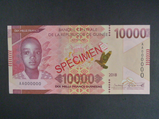GUINEA, 10000 Francs 2018 SPECIMEN, BNB. B343as