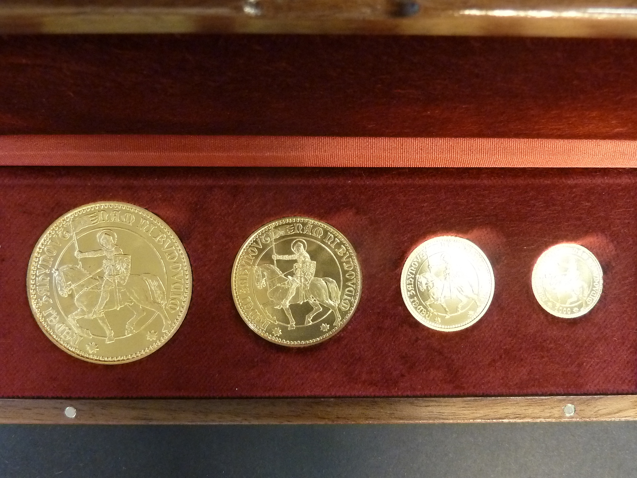 Jubilejní Svatováclavské dukáty 1 + 2+ 5 + 10 Dukát prvoražby z návrhů Jana Čejky z r. 1923 sv. Václav na koni, Au 986, 62,83g, náklad 100 ks číslovaných, č. 78, společná etue, certifikáty
