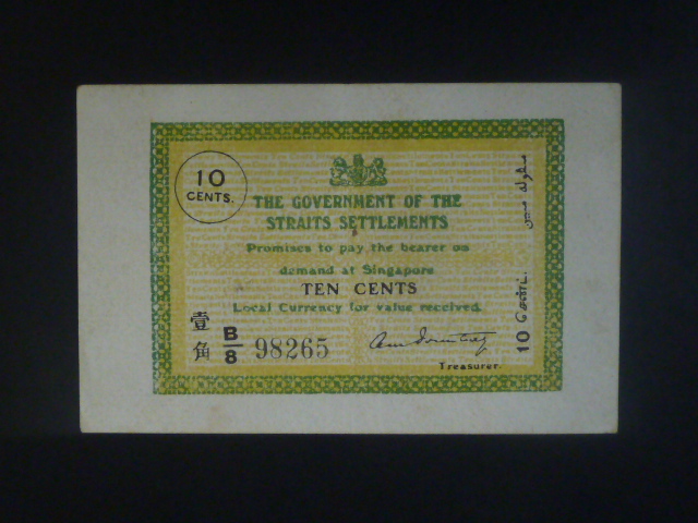 STRAITS SETTLEMENTS, 10 Cents 25.2. 1920, Prefix B/8, BNB B115c, Pi. 6c