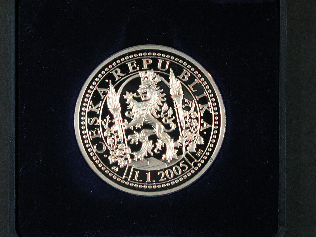 Stříbrná medaile ke vzniku ČR, punc Ag ryzost 999, váha 15g, 2005, mohyla míru