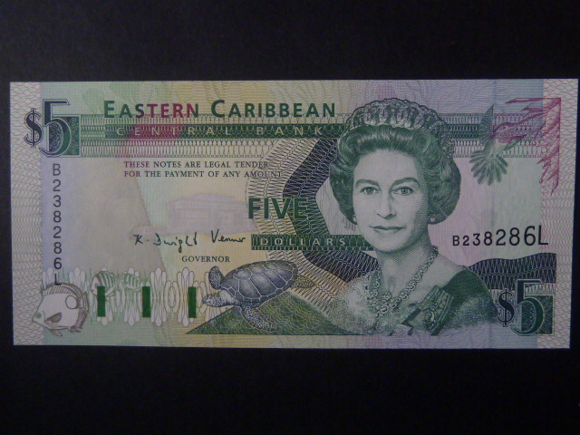 VÝCHODOKARIBSKÉ STÁTY, Sv. Lucie 5 Dollars 1993, BNB. B210l, Pi. 26