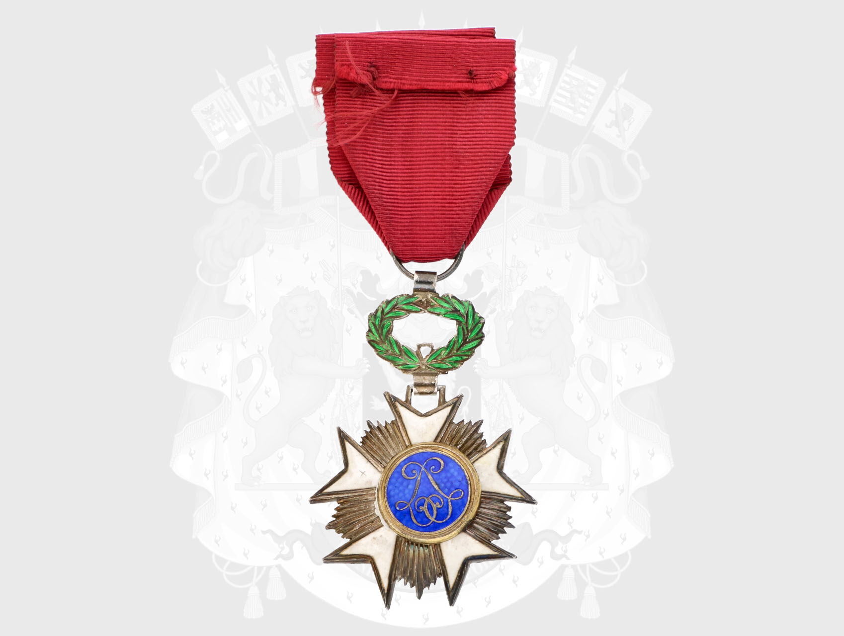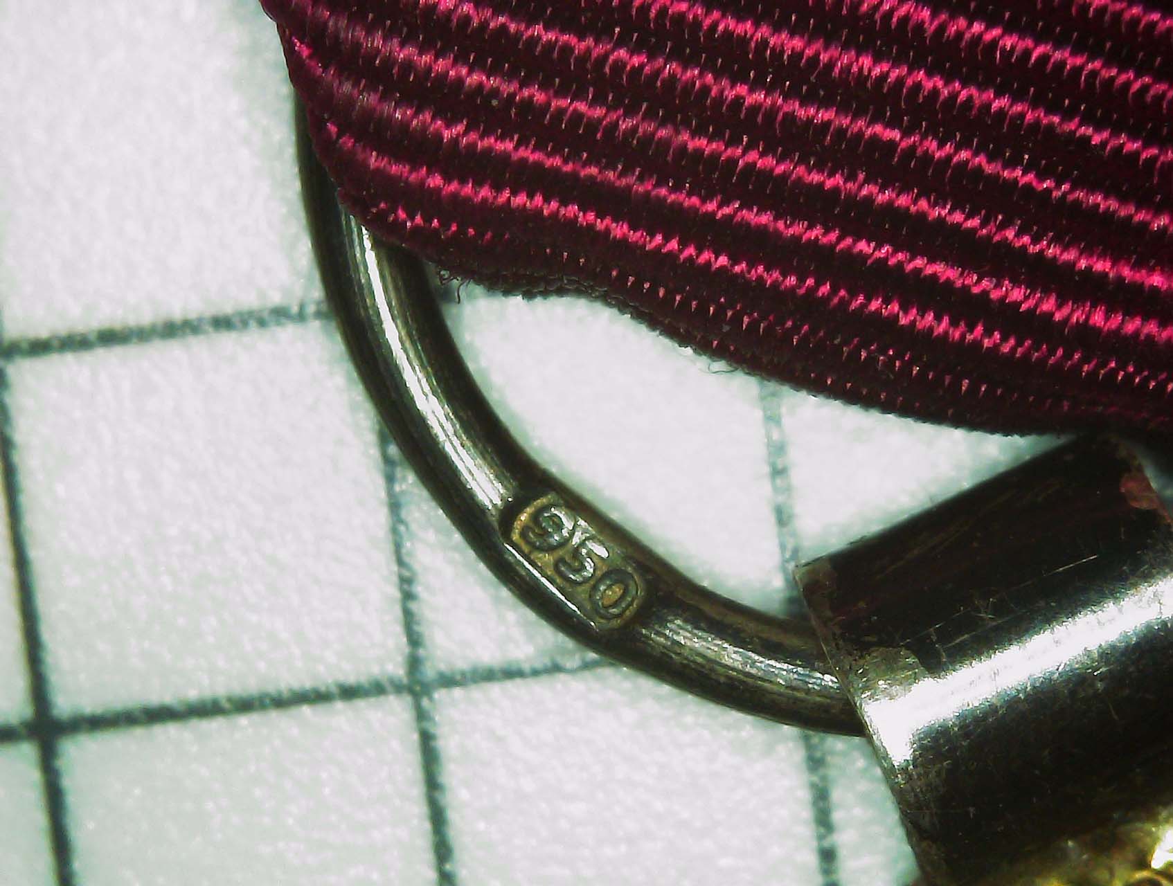 Řád Koruny, rytíř, (5. třída) s meči na stuze, stříbro, smalty, na závěsném kroužku ryzostní značka 950