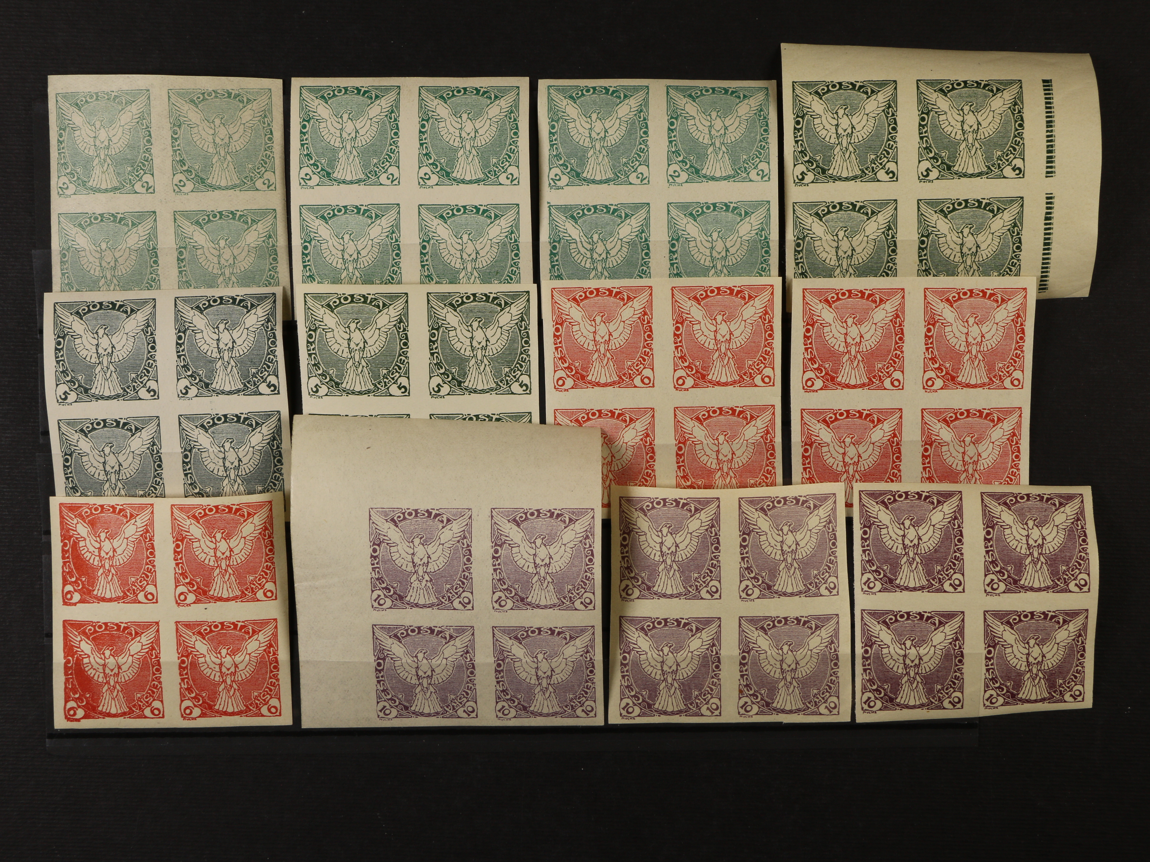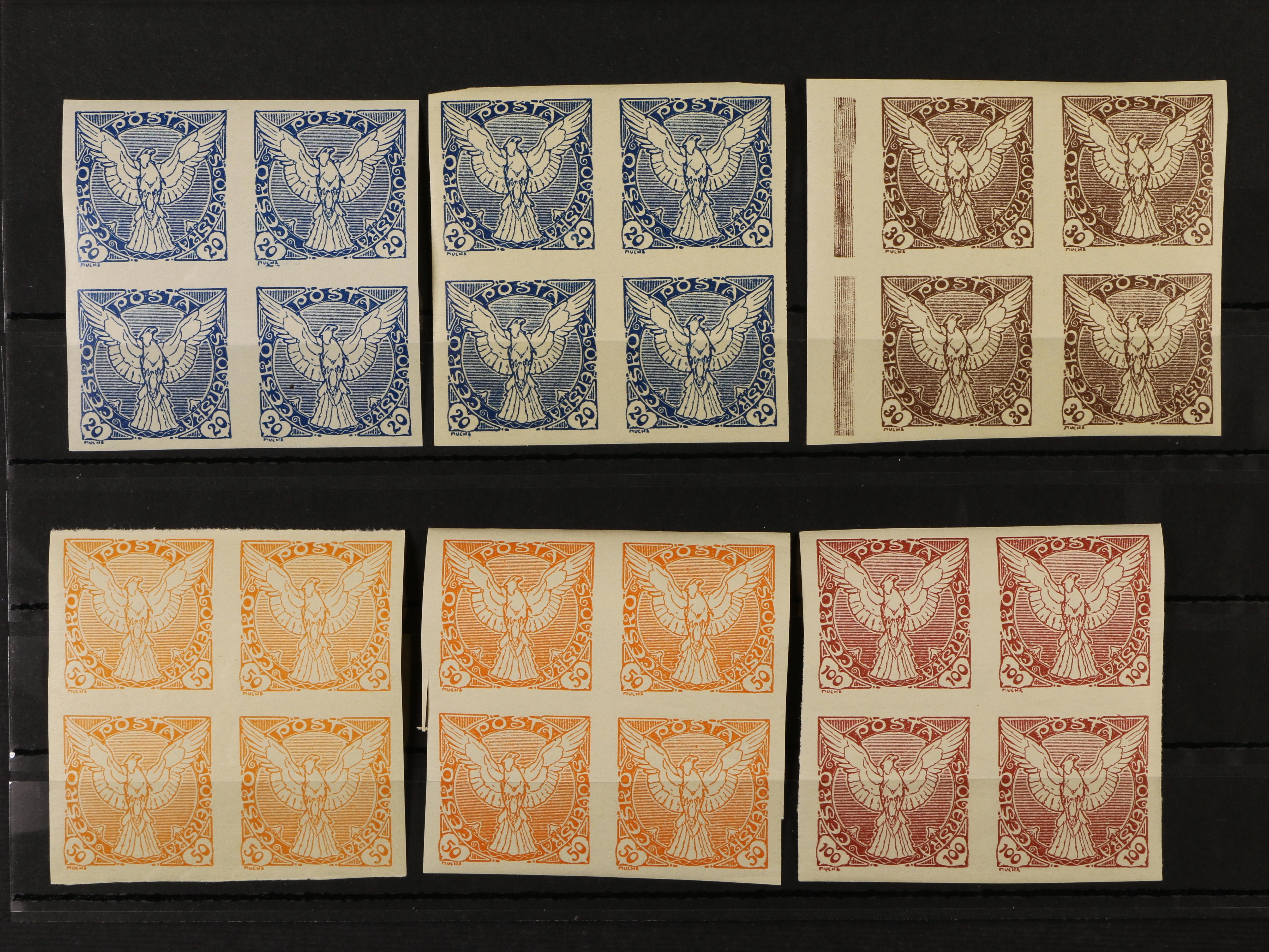 zn. č. NV1-8 ve čtyřblocích, barvy a odstíny, celkem 18 čtyřbloků