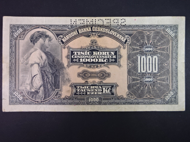 1000 Kč 1932 série A, perf. SPECIMEN