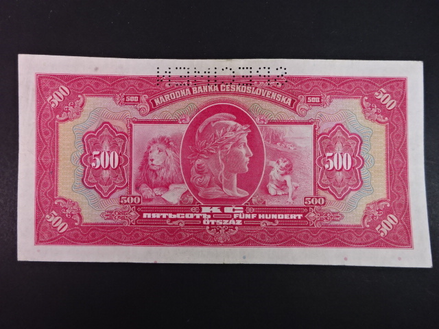 500 Ks 1929/1939 s přetiskem série G, perf. 1x SPECIMEN nahoře