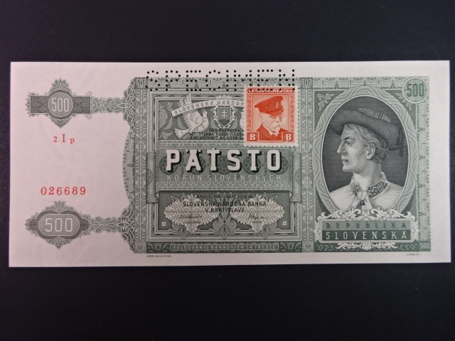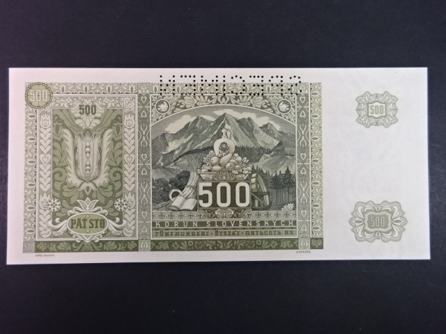 500 Ks 1941 kolkovaná série 2Ip, perf. SPECIMEN nahoře