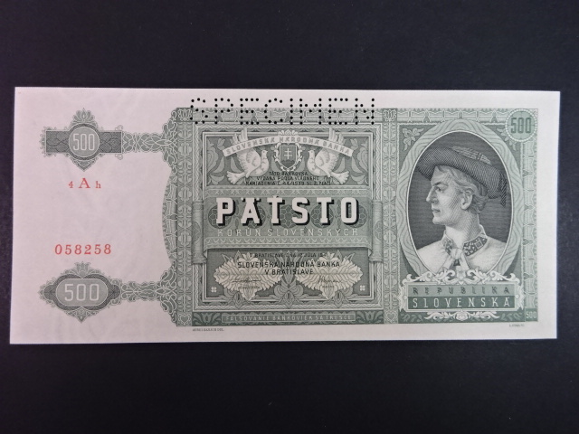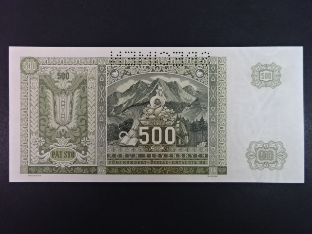 500 Ks 1941 série 4Ah, perf. SPECIMEN nahoře