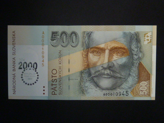 500 Sk 1993 série A (2000), přítisk Bi-milénium, CHYBOTISK - velký posun přítisku