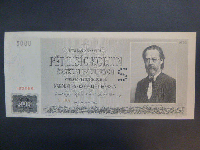 5000 Kčs 1945 série 19 A, perf. "S"