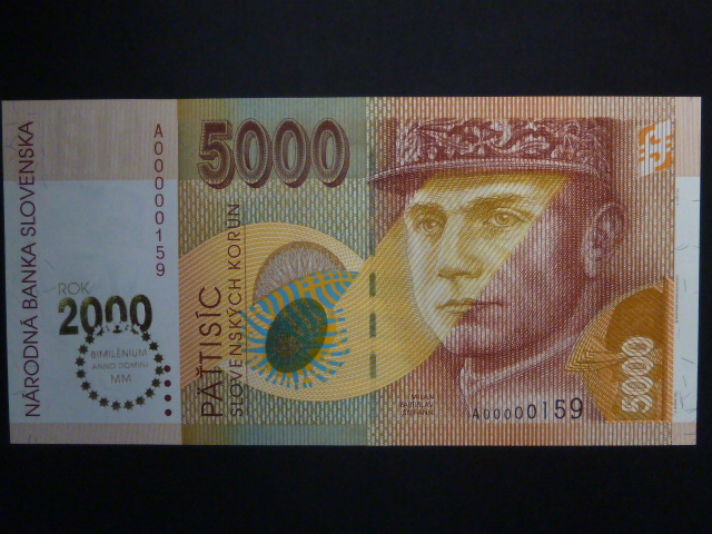 5000 Sk 1995 ssérie A (2000), přítisk Bi-milénium, nepatrný posun přítisku