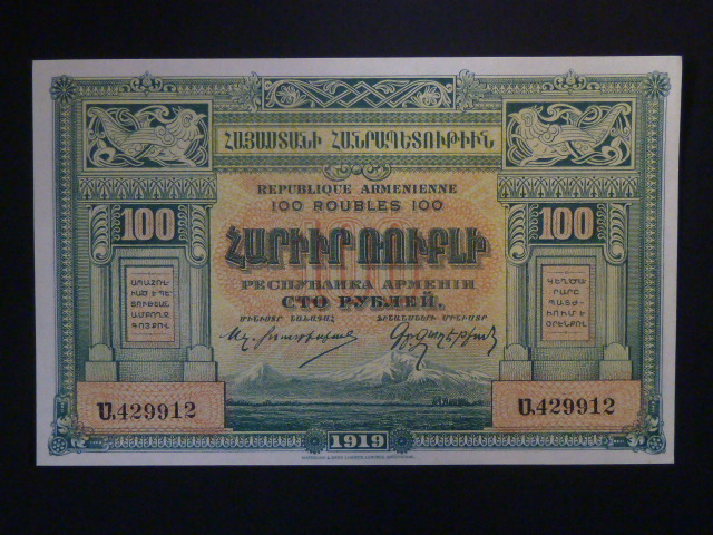 ARMÉNIE, 100 Rubles 1919, BNB. B102a, Pi. 31