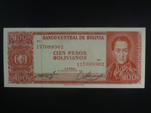 BOLÍVIE, 100 pesos Bolivianos 1982, BNB. B350t, Pi. 163