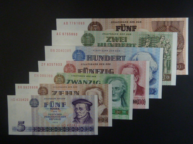DDR - sada 5, 10, 20, 50, 100, 200, 500 Mark 1975, Grab. DDR 23-27, B301-B307