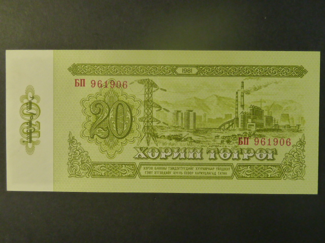 MONGOLSKO, 20 Tögrög 1981, BNB. B312a, Pi. 46