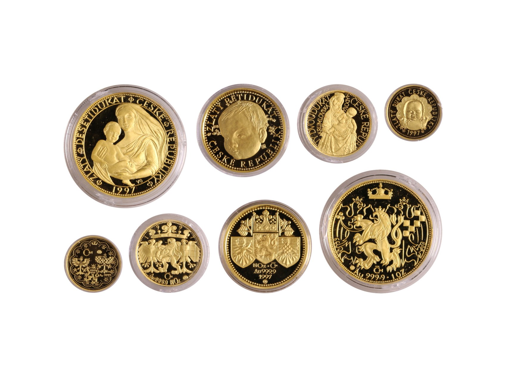 1997, Česká mincovna, zlaté medaile Dukátová řada 1 + 2 + 5 + 10 dukát, Au 0,999, 31,1 +15,56 + 7,78 + 3,11g, náklad 500 ks