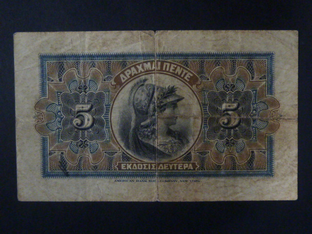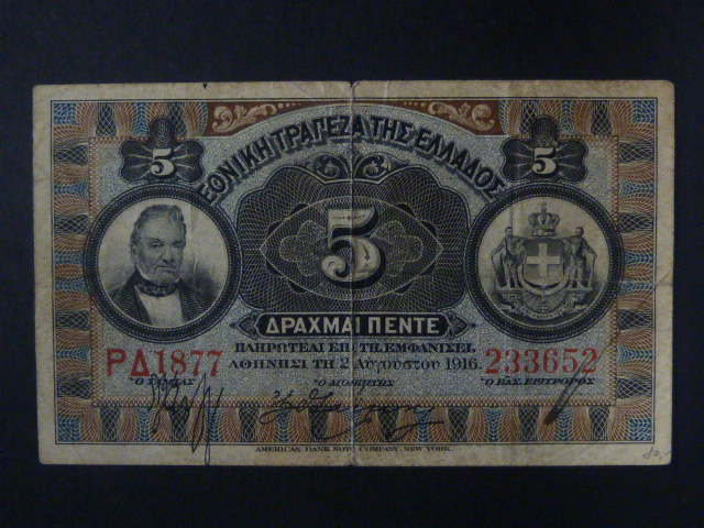 5 drachmas 2. 8. 1916, BNB. B439d, Pi. 52