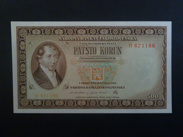 500 Kčs 1946 série H, perf. "3md" nad sebou
