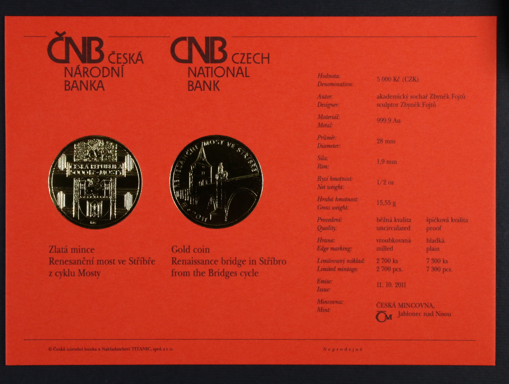 5000 Kč 2011 Mosty - Renezanční most ve Stříbře, 1/2 OZ
