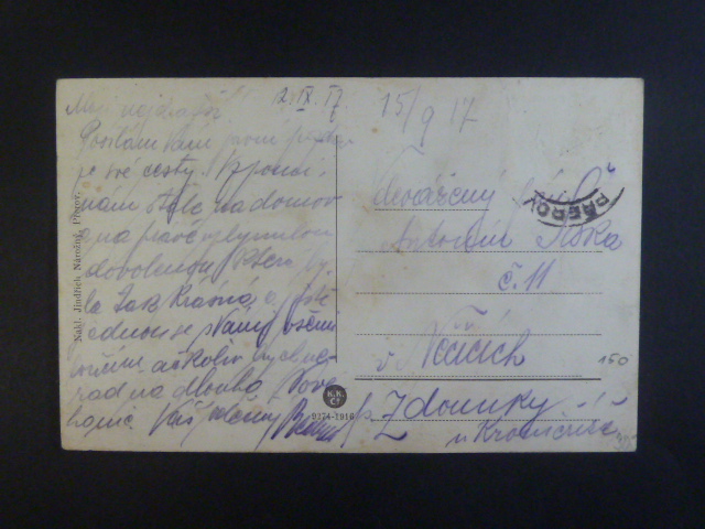 Přerov Zemská střední hospodářská škola, prošlá 1917, stržená zn.