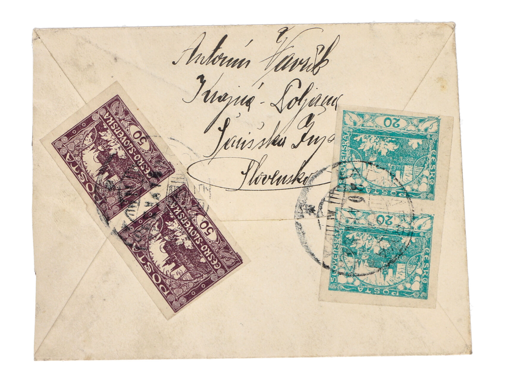R-EXPRES dopis do Brna s českou R-nál. LADOMÍROV frank. na zadní str. zn. č. 8, 15 ve dvoupáskách s pod. uherským raz. LADOMER 20.AUG.19, zajímavé