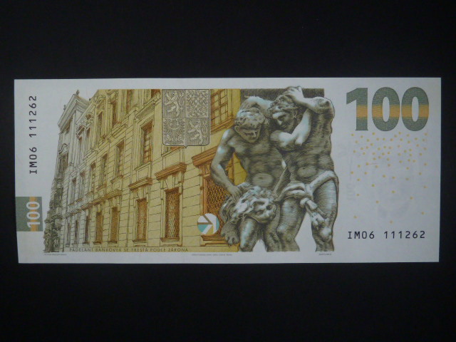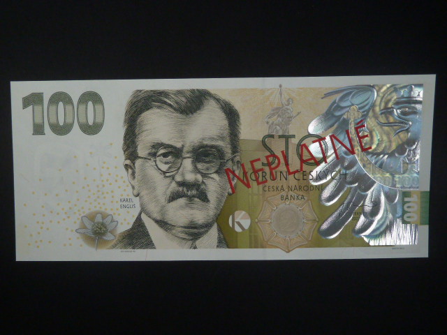 • 100 Kč 2022 série IM 06 s červeným přetiskem NEPLATNÉN na A, nevydaná pamětní 100 Kč s portrétem Karla Engliše s velkým hologramem orlice, Ba. CZ 31Ns
