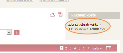 5. pokud chcete ukončit nákup, potom klikněte na odkaz "zobrazit obsah košíku" v pravé části stránky. V nákupním košíku můžete změnit počet kusů jednotlivého zboží, případně zboží z košíku odstranit.